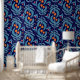 Dit stijlvolle natuur-thema behang met kleurrijke sinaasappel en rode bloemen, gestructureerde blauwe bladeren, en sinaasappel en rode kersen op de aangepaste marineblauwe achtergrond kan worden gebruikt voor uw naaiprojecten voor kleding of huisdecoratie. Als u wilt, kunt u de patroongrootte of achtergrond wijzigen om deze persoonlijk te maken.