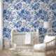 Elegant blauw en wit chinoiseries bloemenpatroon behang
