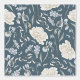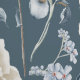 Elegant blauw & wit bloemenpatroon op blauw behang
