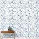 Elegant Blauw Wit Paard Bloemenpatroon Behang