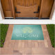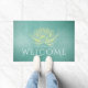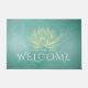 Elegant Glows Gold Lotus en Blauwgroen Grunge Background Yoga Mediation instructor Welcome Doormat Sjablonen. Ideaal voor Yoga Instructor / Fitness Personal Trainer / Spa / Massage Salon / Beauty Resort / Massage Therapist en andere creatieve professionals..