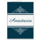 Elegant bloemontwerp met naamdecoratie en strepen op blauwe en witte achtergrond