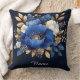 Een levendige digitale illustratie met een boeket van blauwe en witte bloemen met gouden details, geplaatst tegen een donkere contrasterende achtergrond, die een gevoel van luxe en artistieke sophisticatie oproept.