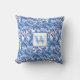 Elegant blauw bloemkussen met monogram. Het patroon van de florale waterverf in de zomer zal elke kamer oplichten. Gemakkelijk om het monogram en de naam van de productpagina te veranderen.