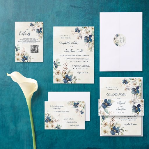 Elegant Blue Floral Winter WeddingOntworpen door Dreaming Mind Cards