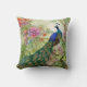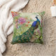 Elegant Blue Green Peacock Pink Flowers Forest Kussen