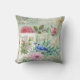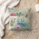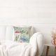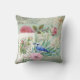 Een sierlijk kussen met vierkante worp met een roze bloemenefemeer-ontwerp, verfraaid met romantische briefschrijfsels en postmerken met een prachtige blauw jay-vogel die u kunt personaliseren door jouw naam toe te voegen.