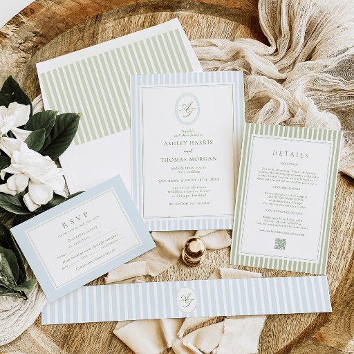 Elegant Mist Blue Striped WeddingOntworpen door Juno Designs