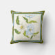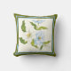 Elegant boeket van lichtblauwe en witte bloemen met olijfgroen, blauwe rand op maat bloemenAmerikaans MoJo gooi / gooi decoratief kussen, met prachtige blauwe en witte bloemen in een groene en blauwe rand op ivoren achtergrond. Een elegant, stijlvol design met een retro/ gevoel, maar tegelijkertijd modern.