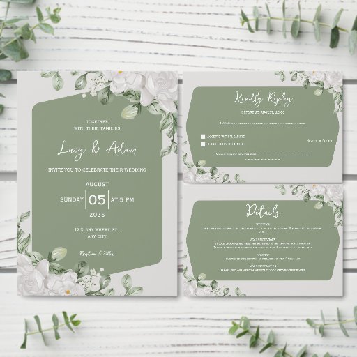 Elegant Sage Green Botanical Floral Wedding SuiteOntworpen door Latmer Az el arab