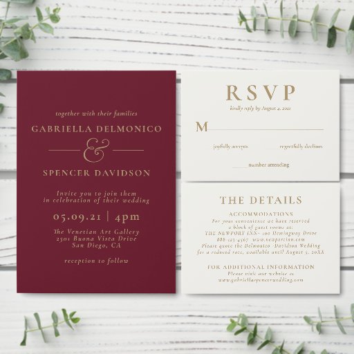 Elegant Burgundy Cream Wedding Invitation Kaart