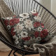 Een elegante bogundy en roomkleurige roos met een florale grijze achtergrond gooien kussens.