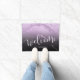 Minimale en moderne gepersonaliseerde doormat met faux paarse glitter en zwarte marmer textuur, elegante handgeschreven scriptletters. Een perfect cadeau voor nieuwe huiseigenaars of nieuwigheden.