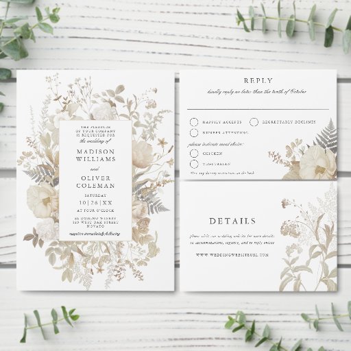 Elegant Chic Ecru Boho Bloemenbruiloft Uitnodigingen Wikkel