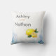 Elegant Citroen Geel & Blauw Waterverf Bruiloft Kussen