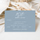 Our elegant dusty blue wedding menu design with a combination of beautiful calligraphy script paired with simple, clean text is perfect for your chic and minimal wedding celebration. With white text on a blue background to the front of the card, the tonal blue text on the reverse contrasts the white background, creating a simple yet elevated look to complement your stylish celebration. Easy and quick to customize with all the details of your special menu.