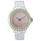 Elegant en stijlvol polshorloge voor vrouwen. © Radenbrea Studios in Zazzle. Dit stijlvolle dameshorloge heeft een abstract rozen gouden folie gezicht. Zeer vrouwelijk en modern.