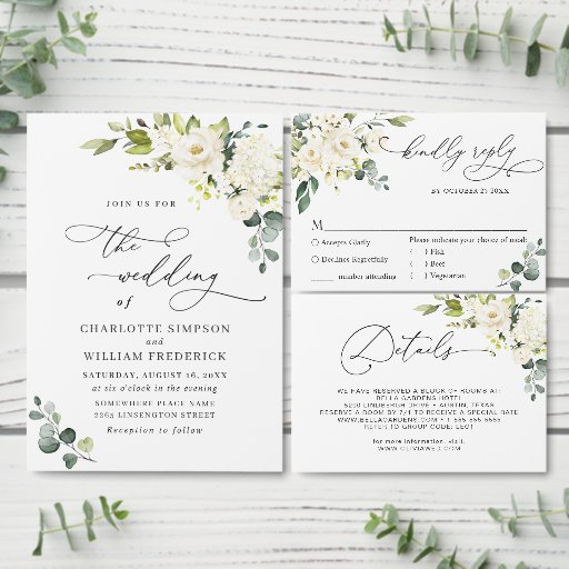 Part 1 Elegant Eucalyptus White Roses Wedding Set.Ontworpen door Ellen L