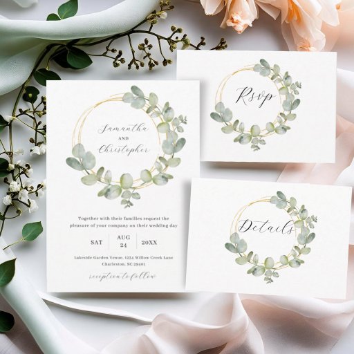 Green & Gold Eucalyptus Wreath Wedding CollectionOntworpen door Lara Bjornson