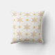 Gooi kussen met sierlijke faux gouden folie imitatie sneeuwvlokken en sterrenpatroon op witte achtergrond.