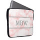 Elegant Faux Pink Marble Gray Monogram Laptop Sleeve