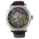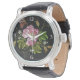 Elegant Floral Embroidery Pattern on Black Backgro Horloge