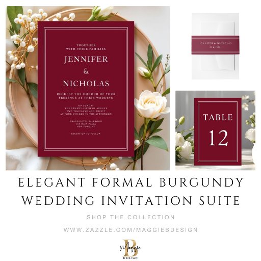 Elegant Formal Burgundy Wedding Invitation SuiteOntworpen door Maggie B Design