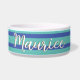 Een stijlvolle voedsel- of waterbak voor uw hond, met een aantrekkelijk ontwerp van verse blauwe en aqua strepen. Personaliseer met de naam van uw huisdier in scripttypografie, voor een elegante individuele finishing touch.