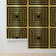 Extravagant, elegant en glamoureus zwart en goud behang met grote glanzende gouden vierkanten ingewikkeld gekoppeld aan een boeiende 3D-illusie te produceren. Achtergrondkleur kan individueel worden gewijzigd op basis van uw eigen voorkeuren. Behang kan ook worden gebruikt als rand.