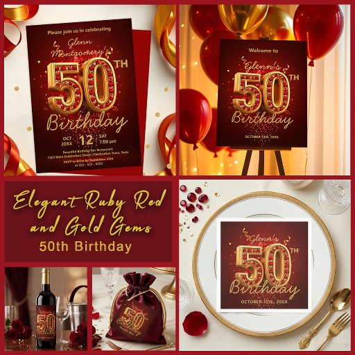 Elegant Ruby Red and Gold Gems 50th BirthdayOntworpen door Kristina Lj Petrovska