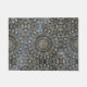 Moderne gouden tribal mandala bloem, handgetekende henna bloemig, glitterachtig geel goud metallic effect mandala blauw ontwerp, trendy girly mehndi bloemig, gouden stippen, geometrisch, bloemencirkel, zonnen, bladeren, vormen, strepen, driehoeken, stippen, lijnkunst, glanzende faux gouden luxe glitter schittert, gloeiende sterren, marineblauw, donkerblauwe mystieke achtergrond. Een moderne en elegante decoratieve mandala, handgetekende, inheemse, Azteekse etnische motiefillustratie, gemaakt van blauw en gouden kleuren die dapperheid en toewijding symboliseren, is een mystieke afbeeldingen print.