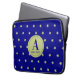 Elegant Gold & Blue Star Pattern Monogram Laptop Sleeve
