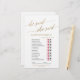 Deze elegante goudkalligrafie "zei ze dat" is perfect voor een eenvoudig vrijgezellenfeest. Het neutrale ontwerp is voorzien van een minimalistische gamekaart met romantische en faux gouden folie-typografie. Pas de spelkaart aan met de naam van de bruid en de datum van het vrijgezellenfeest. Opmerking: dit ontwerp is niet voorzien van echte gouden folie. Het is een afbeelding van hoge kwaliteit die gemaakt is om op gouden folie te lijken.