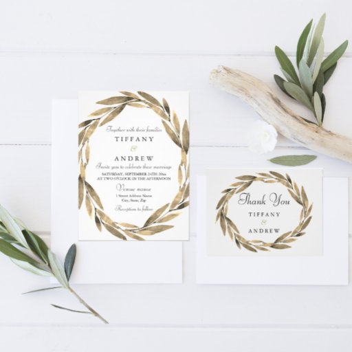Modern Gold Golden Leaf Wreath WeddingOntworpen door Chris Ballester