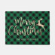 Moderne, gepersonaliseerde Merry-kerstboomvormgeving met elegante faux gouden handgeschreven scriptletters, prachtige rendieren, zwarte en groene buffelvormgeving. Een perfect kerstcadeau voor nieuwe huiseigenaars of nieuwigheden.
