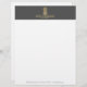 Coördineert met de Elegant Golden Pineapple Logo op grijs visitekaartje template tegen 1201AM. Een tijdloze en elegante logo van een ananas weergegeven in faux metallic goud is ingericht met jouw naam of bedrijfsnaam aanpasbare briefhoofd sjabloon. Het ananasontwerp is perfect voor gastvrijheid, makelaars, interieurontwerpers, huisstylisten en meer. Dit ontwerp maakt deel uit van een serie coördinerende kantoor-materialen. Ontworpen door 1201AM, een boutique brand design studio. www.1201am.com © 1201AM CREATIVE