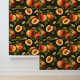 Bring timeless elegance to your space with this luxury botanical peach wallpaper, inspired by vintage fruit engravings and classic European design. Featuring gold-etched peaches, delicate blossoms, and leafy branches on a rich deep-green background, this pattern adds warmth, charm, and sophistication to any room.
