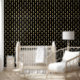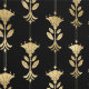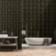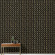 Elegant behang voor moderne ruimtes met een gouden art deco patroon op een zwarte achtergrond.