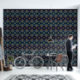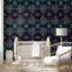 Een trendy geel faux gouden tribal mandala henna artwork met tinten van middernachtblauw en paarse, een kleurmix met verloop, en glanzende sterren. Perfect voor elke dag draag of home decor.
