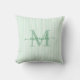 Add a soft, stylish touch to your home with this elegant personalized pillow. Featuring a green and white striped background, this decorative cushion is customized with your monogram initial and name in a fancy script font, creating a timeless and feminine look.
