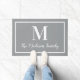 Verhoog de ingang van je huis met dit elegante aangepaste monogram-model in neutrale, grijze en witte kleuren. De kleuren kunnen worden gewijzigd. Personaliseer met de familienaam in manuscript en een initiaal van het serif stijlmonogram. Het ontwerp omvat een eenvoudig omkaderde grens.