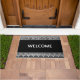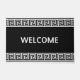 Elegant Grieks patroon op zwarte welkomstdeur. De welkome tekst kan worden gepersonaliseerd.