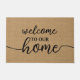 Het prachtige taupe burlap-stijl textiel heeft een elegant 'Welcome to our Home' in eenvoudige typografie woordkunst. Dit en charmante kalligrafie woordkunst ontwerp is ideaal voor de liefhebber van de boerderijstijl van het land cottage die graag hun patio, veranda of zwembaddek versiert met een unieke buiteninrichting.