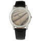 Een elegant horloge met zandduin als achtergrondafbeelding.