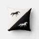 Grafisch gooien kussens met elegante paardensilhouetten op zwarte en witte achtergrond. Ideaal voor een modern thuisdecor.
