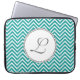 Elegant, klassiek blauwgroen en wit chevron zigzag laptop sleeve
