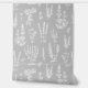 Witte silhouetten van plant botanische illustraties van kruidenthee: basilicum, tijm, rozemarijn, bernagie, marjolein, salie, lavendel op een grijze achtergrond. Handgetekende botanische kruiden planten is een delicate bloemenachtergrond, ideaal voor woonkamers, kamers, gangen, kinderdagverblijven, kinderkamer, keuken of badkamer. Dit ontwerp zal een beroep doen op de liefhebbers van country cottage of boho home decor stijl, maar ook op de moderne en hedendaagse trend. De lichte zachte pastelkleurige kleurvlakken creëer kalmerende sfeer: grijs, salie, mosterdgeel, pastelblauw en lavendel.