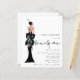 Elegant Lady Trendy Script 21st Birthday Party. Een budgetprijs voor KLEINE 4,5 x 5,6 inch. Verkrijgbaar in een SEMI GLOSS 110 lb KAART STOCK dat de standaardoptie is (aanbevolen voor uitnodigingen, vergelijkbaar met de dikte van een briefkaart) OF een SATIN FINISH 80 lb THINER PAPER STOCK (ideaal voor behuizingen). Een illustratie van het achterste uitzicht van een glamoureuze dame in zwart en 21 is in een funky set handschrift stijl script. Pas de rest van de tekst eenvoudig aan uw eigen details aan.