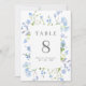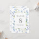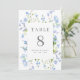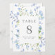 trouwtafel nummers met een rechthoekig lijst omgeven door lichtblauwe waterverf bloemen en groen. Personaliseer met uw namen en trouwdatum. 5x7 grootte