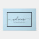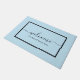 Elegante welkomstdeurmat met een zwart script op een lichtblauwe achtergrond. Personaliseer met uw familienaam of tekst.